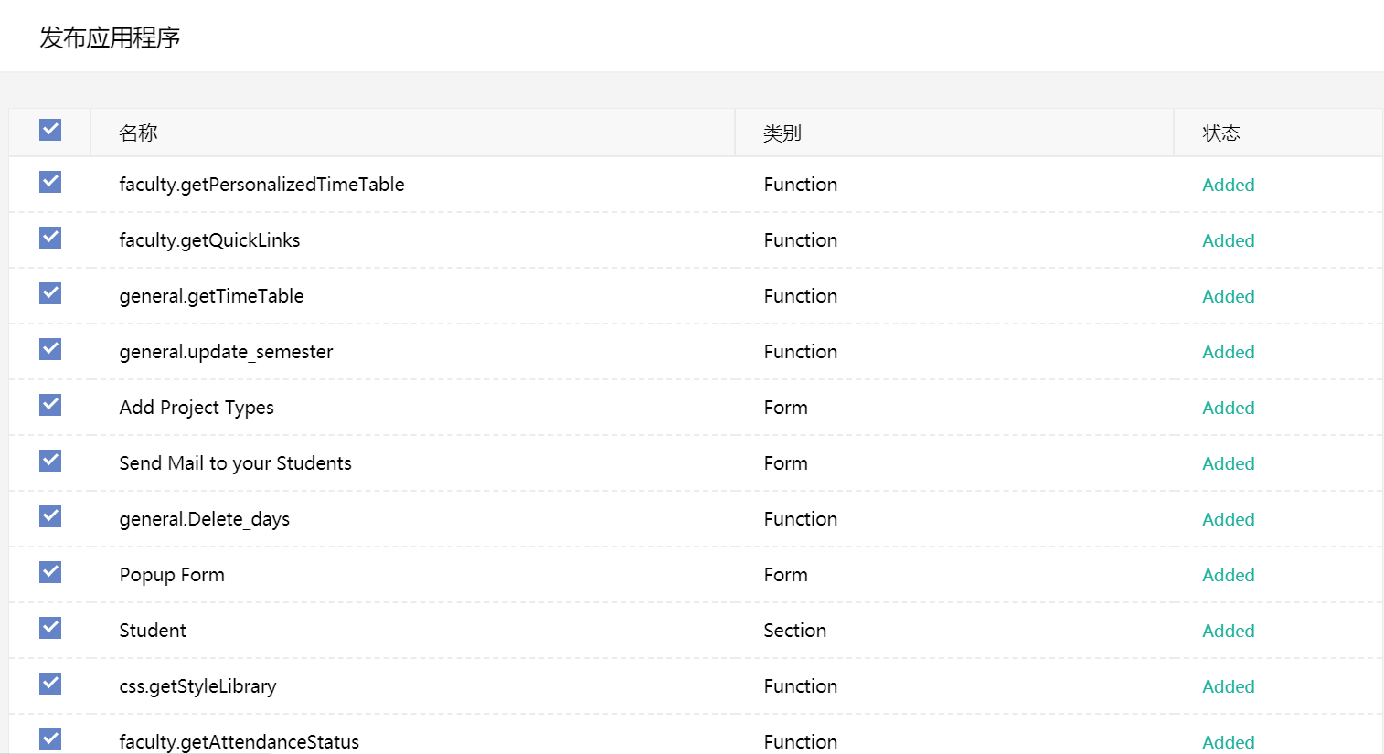 - 点击发布。一个窗口将打开,其中列示您添加至该应用程序的每个组件。