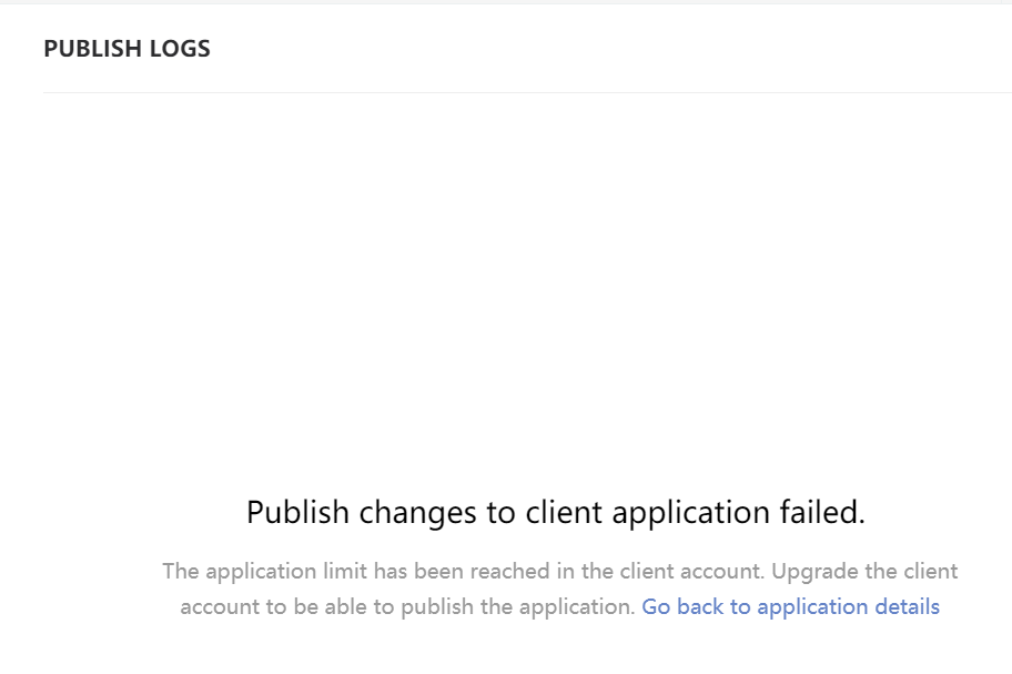 - 点击发布。执行此操作之前,建议测试应用程序以确保此应用程序按预期工作。此应用程序将发布至客户帐户,系统将显示发布日志。