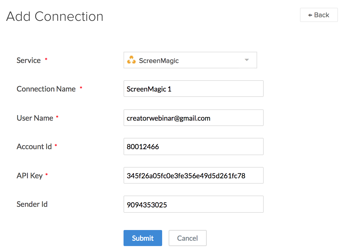 - 将此信息粘贴到 Zoho Creator 的相应字段中,然后点击提交。