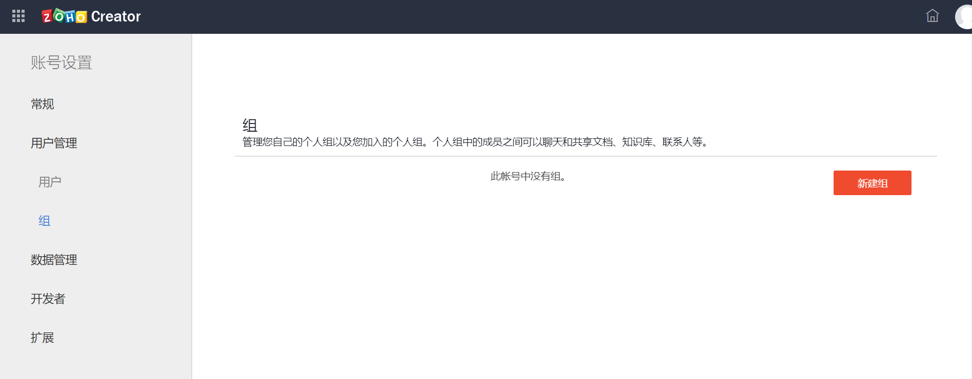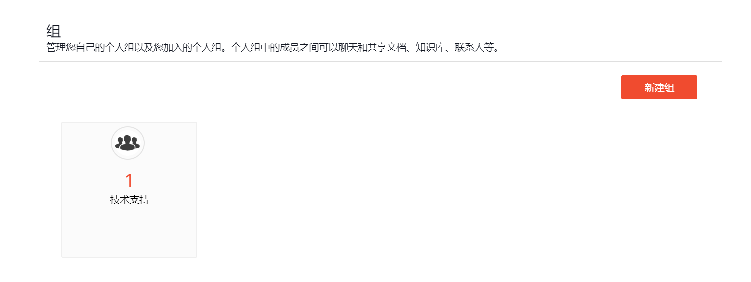 - “组”页面显示您拥有和隶属的组的列表。点击创建新组以创建新组。