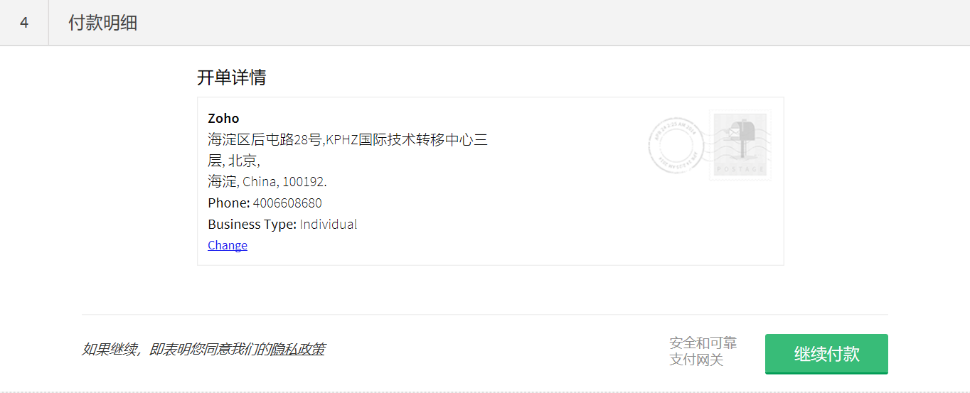 系统会将您导航至“付款”页面。请遵循以下步骤: