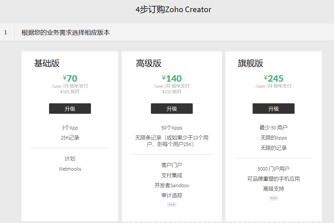 - 选中版本:有三个版本可供选择:基本、高级和旗舰。对所选版本点击升级。