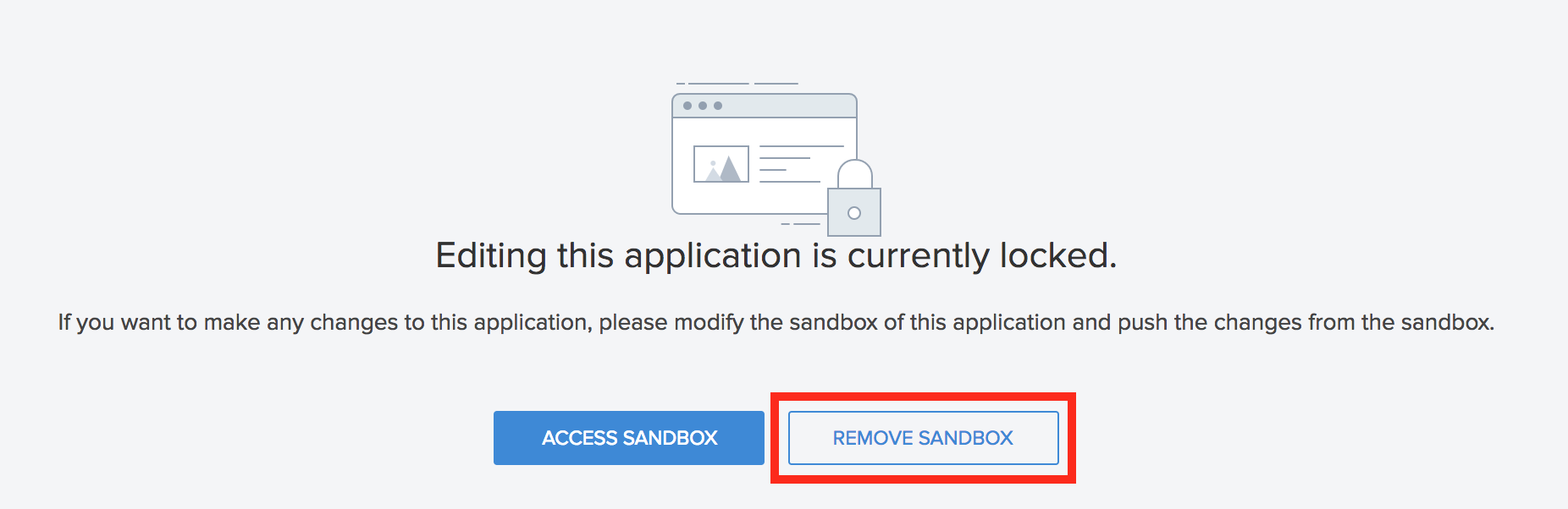 - 应用程序将锁定。您将只能在应用程序的沙箱版本中作出更改。点击访问沙箱。