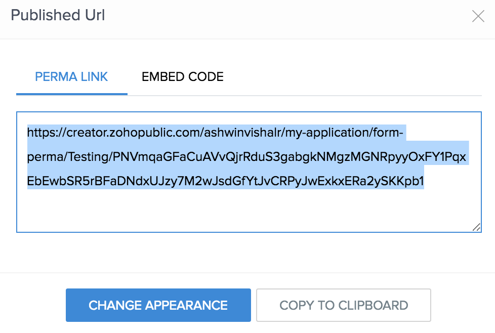 弹出窗口,其中显示了新的永久链接和嵌入代码。