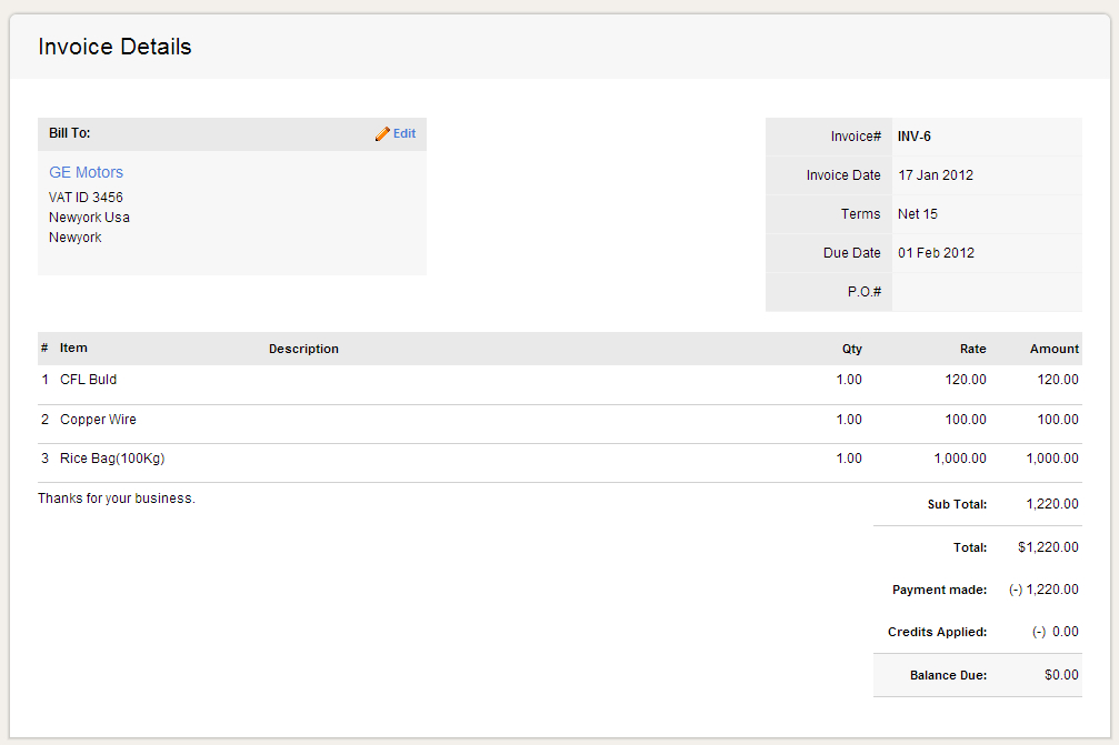 例如,您可在下面的图像中看到使用单条发票记录创建的发票模板: