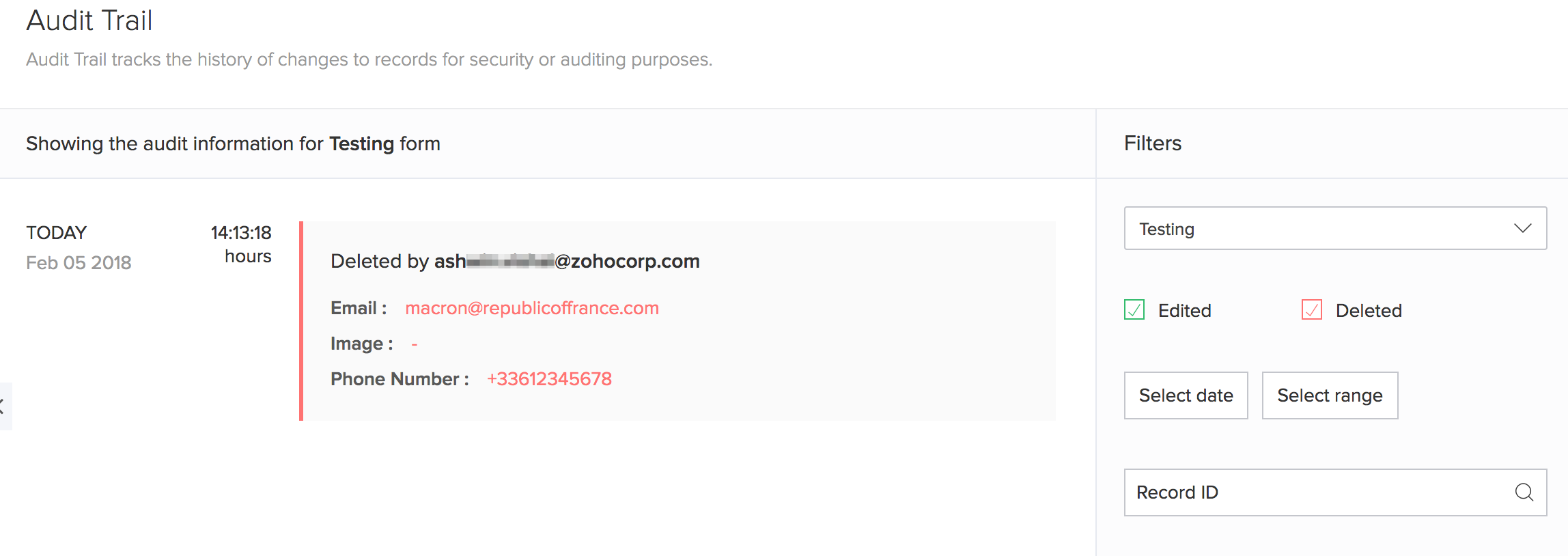 要为其恢复审计跟踪的表单