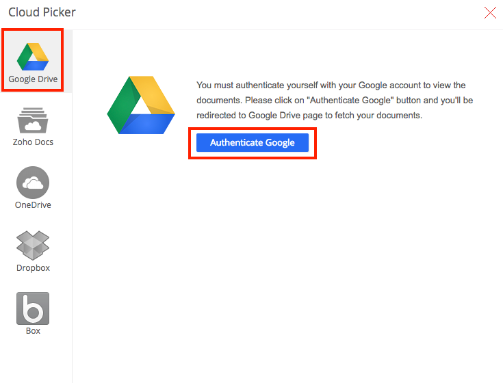 - 您需要输入您的 Google 账户凭证。验证 Google 账户的身份之后,您的 Google 云端硬盘文件将会列出。选择所需的文件,然后点击附加。