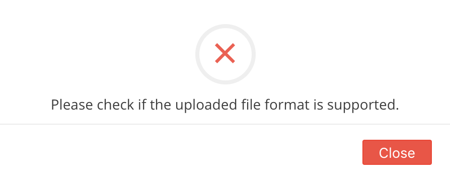 选择所需文件,然后点击附加。如果您选择的文件格式不受支持,那么 Zoho Creator 将发出如下警报。点击关闭会将您重定向至应用的设计页面。