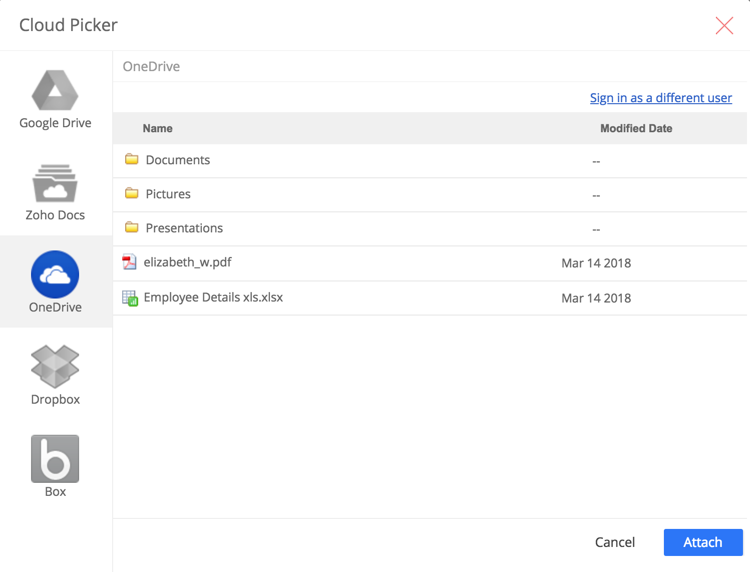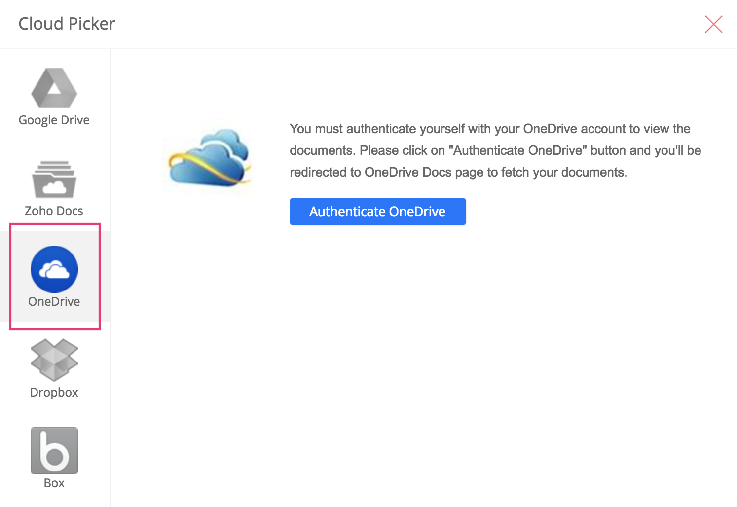 - 您的 OneDrive 中的文件和文件夹将显示在云选取器窗口中。