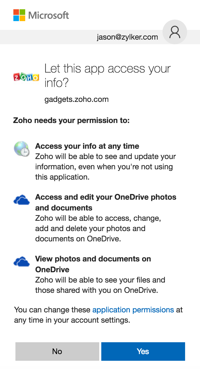 - 输入 OneDrive 凭证。系统将提示您进行授权: