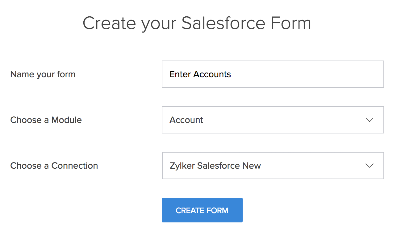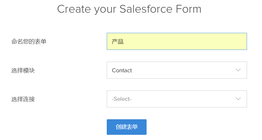 - 在创建 Salesforce 表单页面中,输入以下详细信息: