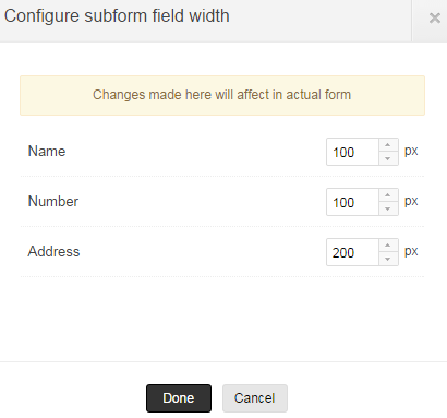 In the popup window, select the required field size and click on Done to save the changes.