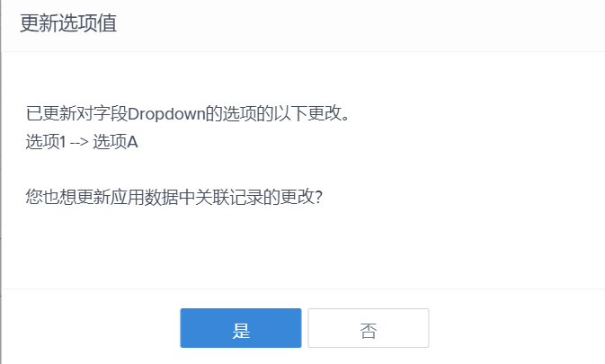 - 单击否会让关联记录保留该字段中的原始值(“选项 1”)。