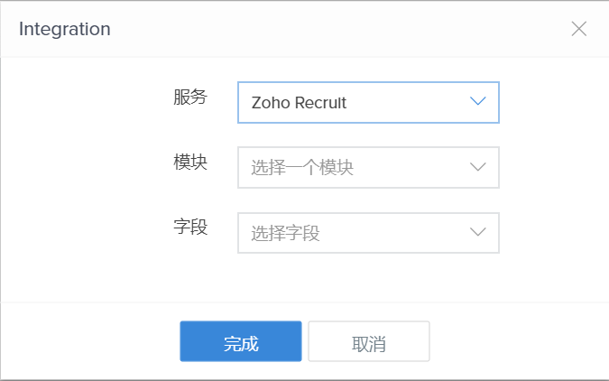 在服务旁边的下拉菜单中选择 Zoho Recruit。