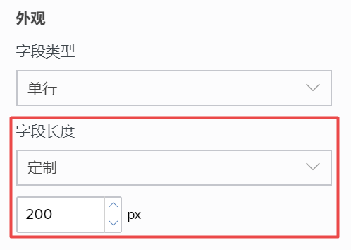 如果您选择自定义,那么您需要以像素为单位设置字段长度,如下所示。