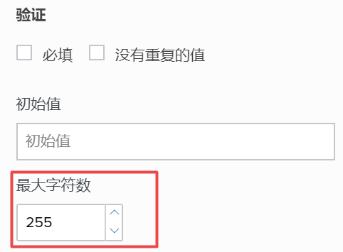 - 在最大字符数旁边的输入框中输入不高于 255 的值。