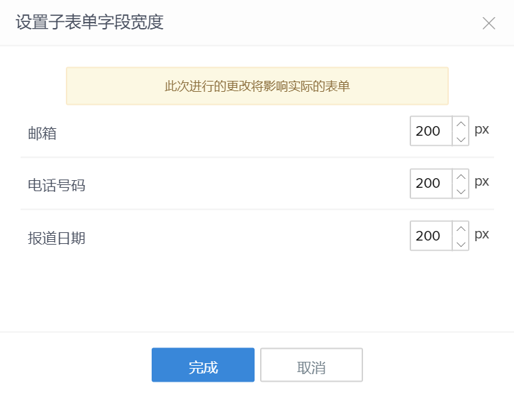 如果您选择手动调整字段宽度,那么您需要以像素为单位设置字段长度,如下所示:
