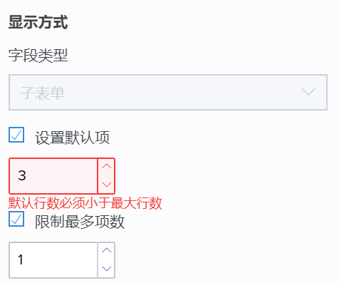默认条目数必须小于最大条目数。如果您进行了其他设置,那么 Zoho Creator 将显示以下提示: