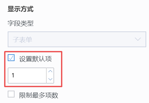 - 选择所需子表单字段。浏览至右侧显示的字段属性 -> 显示类型分栏。