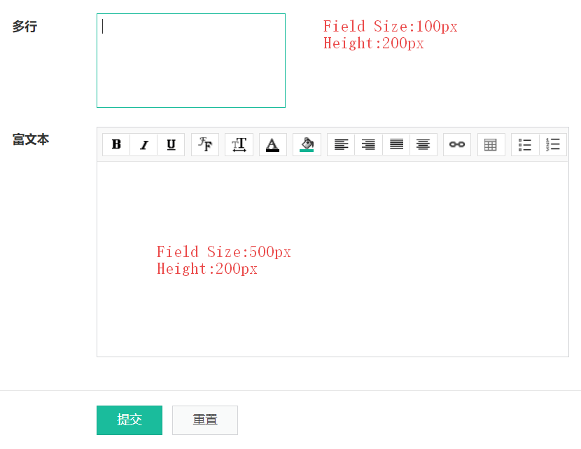属性允许您设置在用户从 web 浏览器访问表单时字段输入区域的显示高度。