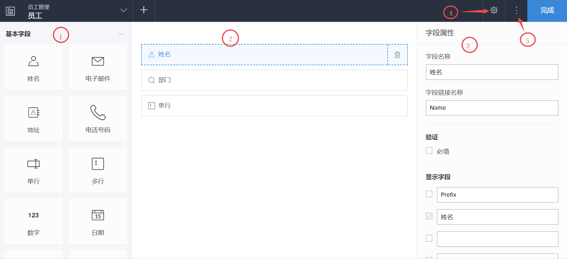 - 表单:可在其中定义表单要包含的字段。可管理表单中的字段,包括: