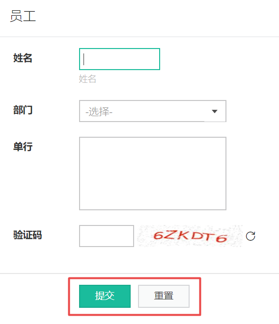 重置按钮清除用户在表单上输入的数据,并将它们重置为默认值。用户从 web 浏览器访问表单时,重置按钮显示在提交按钮的旁边,如上所示。