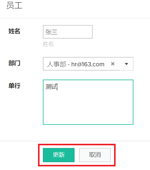 用户访问表单以更新记录时,将显示取消按钮。它显示在更新按钮的旁边,如上所示。取消按钮允许用户移除他们对现有记录所做的全部更改(在点击更新按钮之前)。