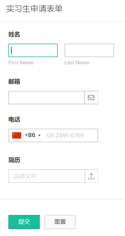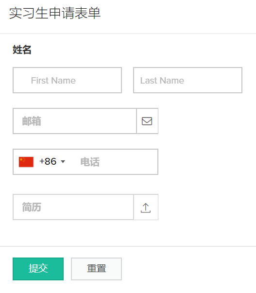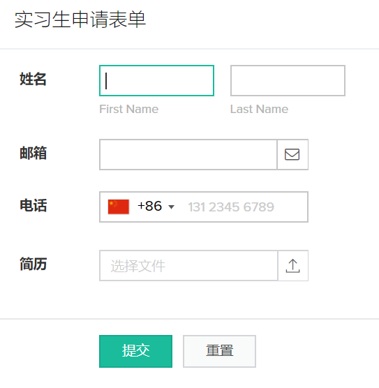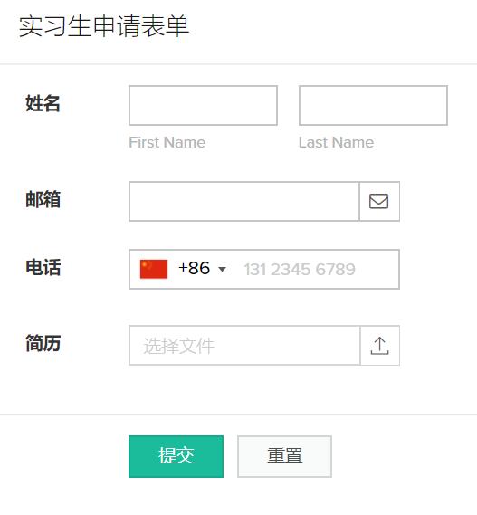 以下图像显示用户从 web 浏览器访问时实习生申请表单的外观: