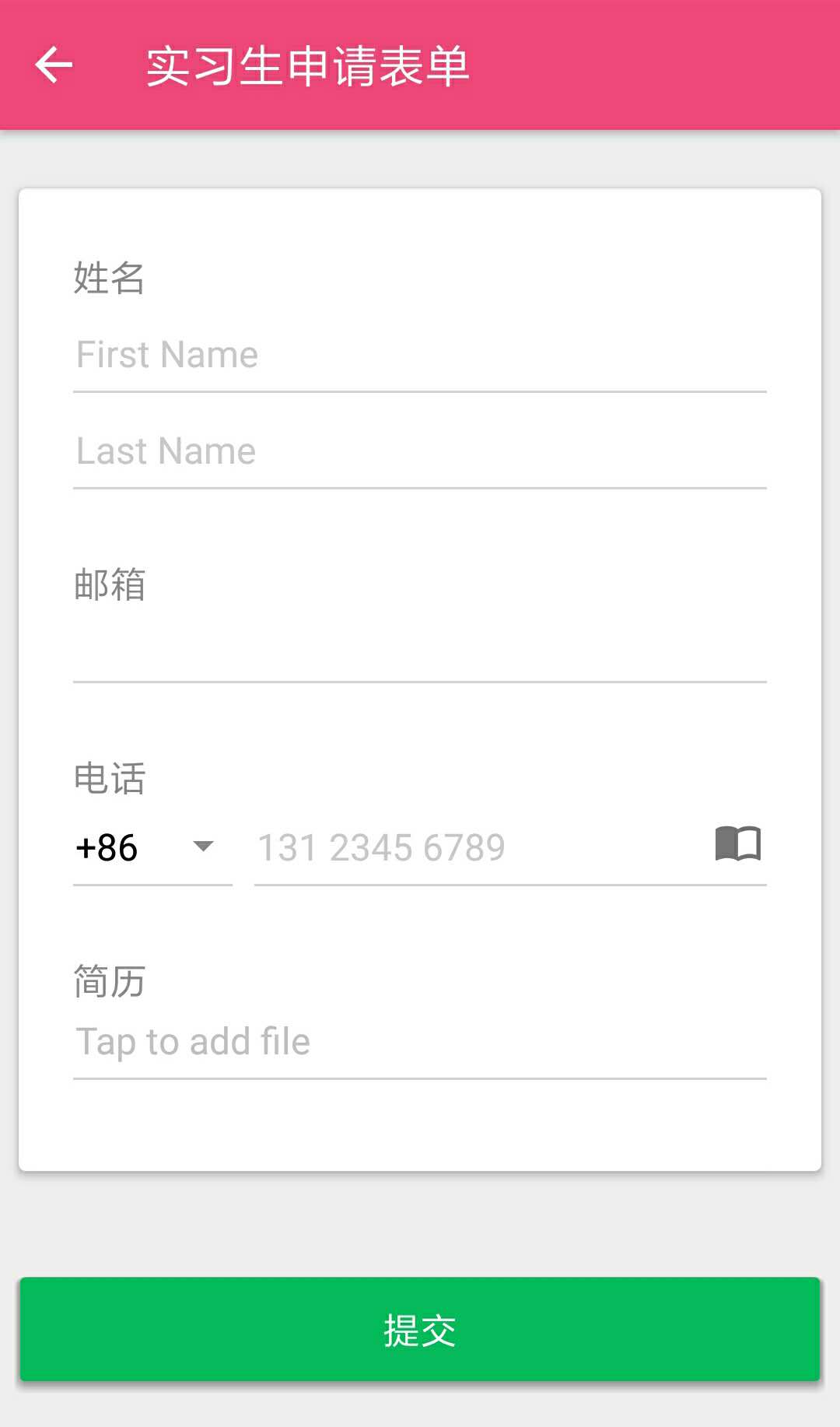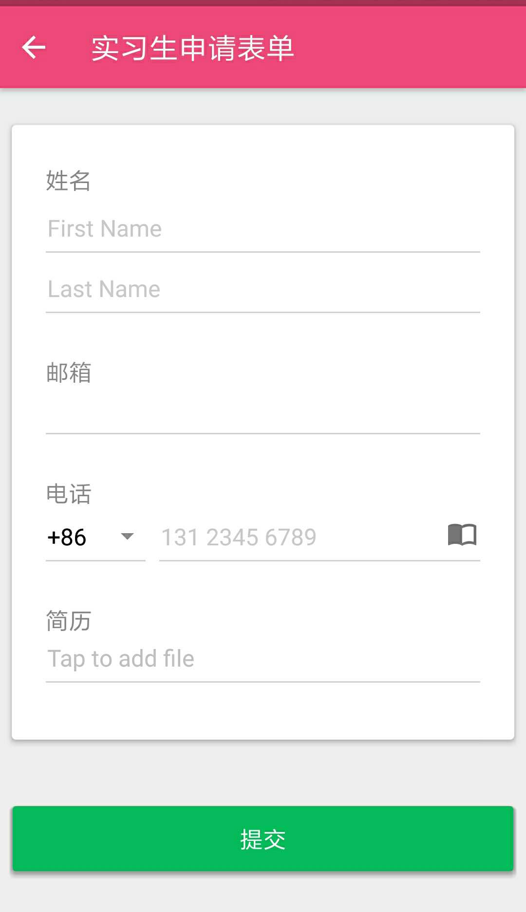 字段名称显示在输入区域上方。这是用于 Android 手机的默认布局。