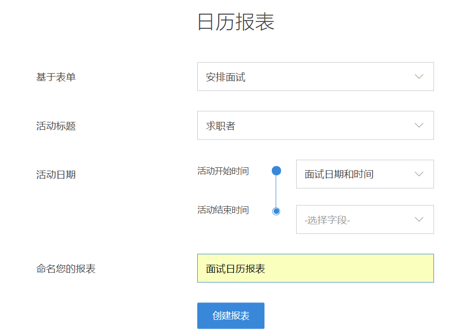 将报表的名称设置为“面试日历报表”,然后点击创建报表。