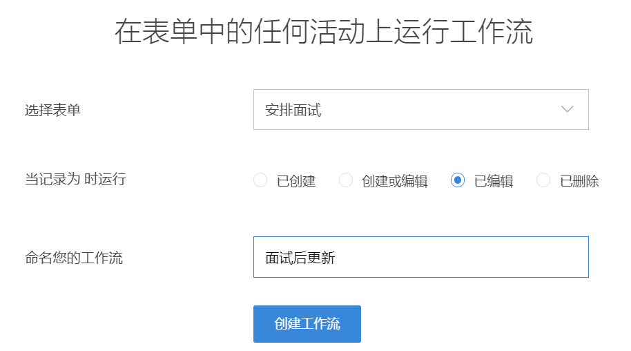 将工作流的名称设置为“面试后更新”,然后点击创建工作流: