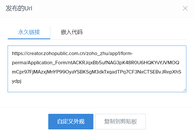复制已发布 URL 弹出式窗口中显示的永久链接。