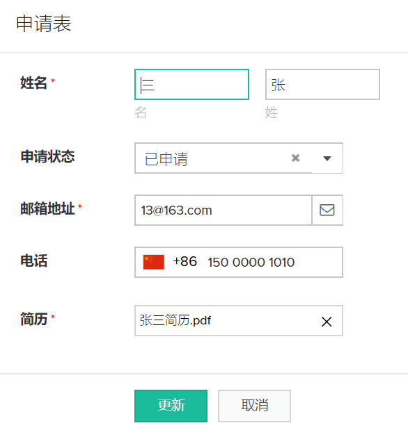 申请表中的申请状态字段旨在追踪求职者在招聘流程中的进度。当求职者提交表单时,这个字段不得向求职者显示,但招聘主管和经理必须可看到此字段。