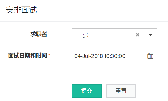 经理将选择一位求职者并设置其面试日期和时间,然后点击提交: