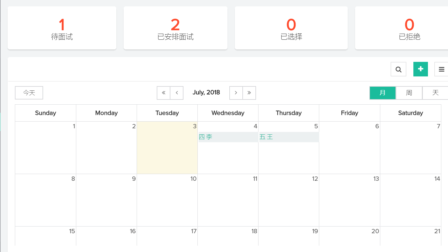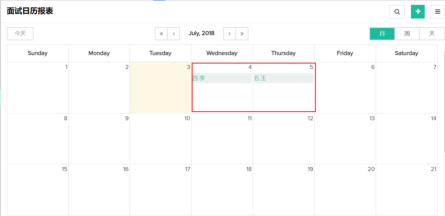 - 经理访问“面试日历报表”。经理通过点击此报表中的所需日期来安排面试。