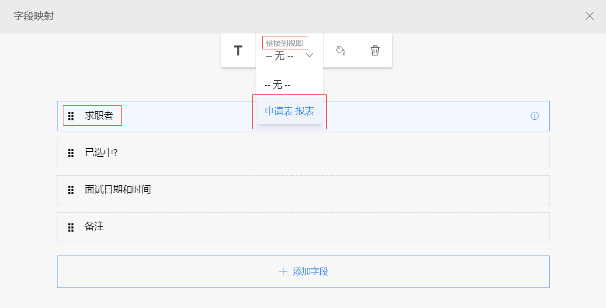 - 从活动标题旁边的下拉列表中选择求职者字段。