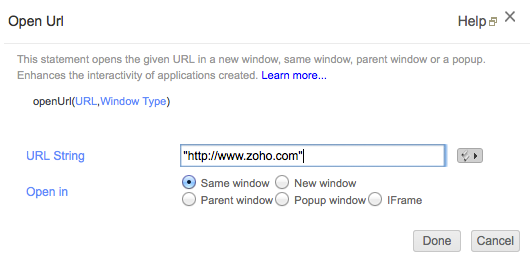 <%openUrl("https://www.zoho.com", "iframe", ("targetTest"));