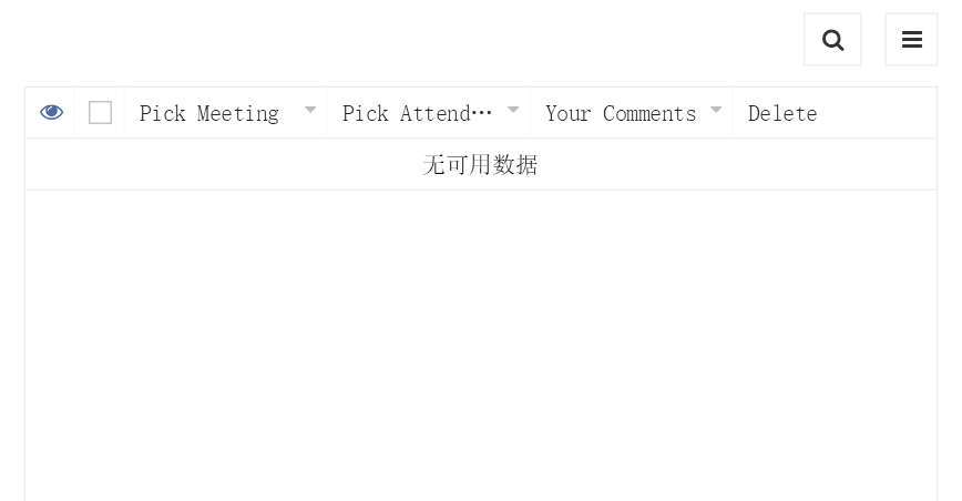 上面的配置将自定义动作按钮添加到会议视图中的每个记录。当点击该按钮时,为所选会议显示表单 Add Meeting Attendance(添加会议出席者)。