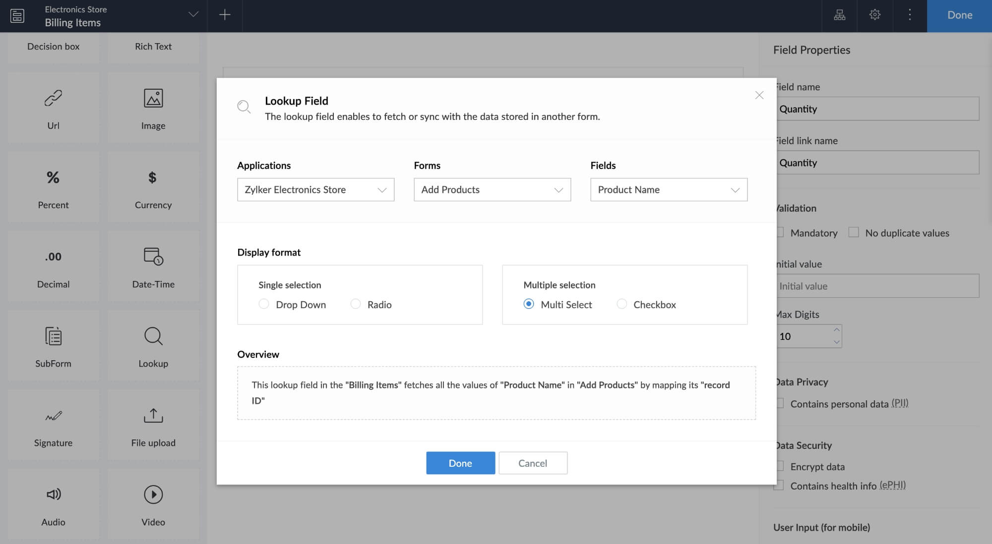 Zoho Creator 提供了广泛的字段类型,包括基本字段和高级字段类型,如名称、地址、下拉列表和查找,可让您使用正确的格式创建包含正确数据的复杂关系数据库。来了解一下!