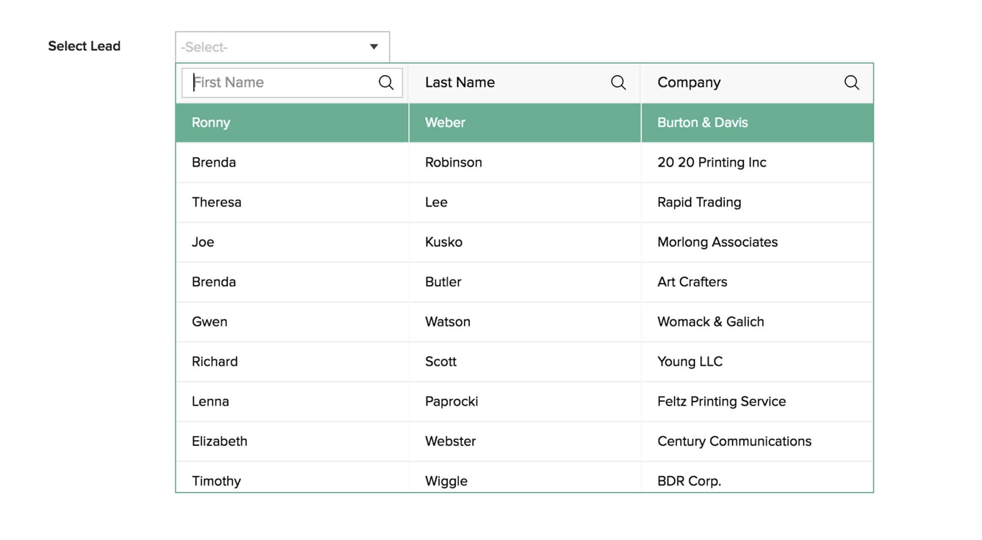 每次用户访问表单上的集成字段时,Zoho Creator 都会从 Zoho CRM、Zoho Recruit、Salesforce 或 QuickBooks 等外部服务的选定模块实时获取数据。您无需编写任何代码即可实现这一目标!