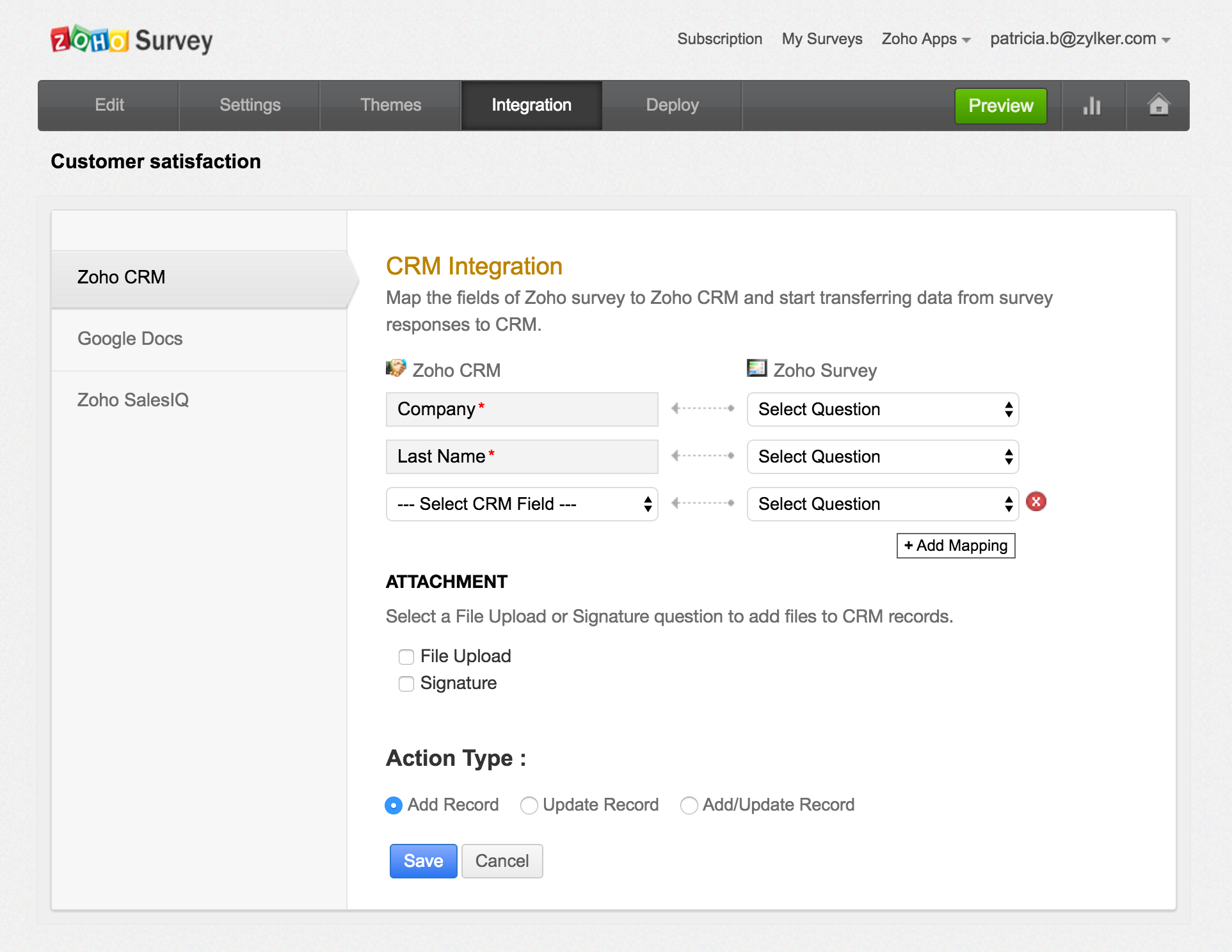 ZohoCRM在线调查功能