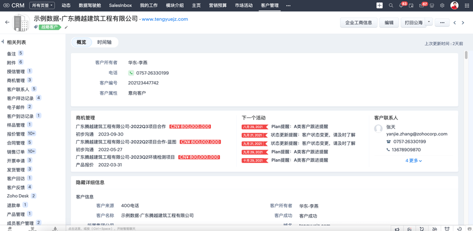光伏行业的销售项目通常涉及多个团队和复杂的计划安排。Zoho CRM项目管理功能有利于协调不同团队之间的合作,跟踪项目进展,提供实时项目信息和报表。项目风险可控、项目执行高效,满足客户要求。