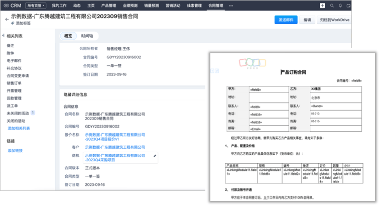 光伏行业的销售过程经常涉及定制化报价与合同。Zoho CRM报价和合同管理功能,帮助企业快速生成并跟踪报价,确保合同及时签订有序执行,提高销售效率,降低人为错误。
