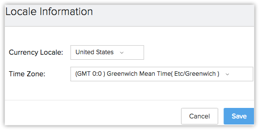 您可以为您的机构 Zoho CRM 账户选择通用时区。 就工作流规则而言,一天将基于此时区进行计算。