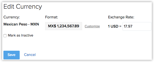 - 编辑在机构的 CRM 账户中添加的不同货币。
