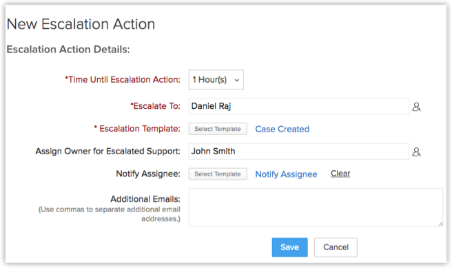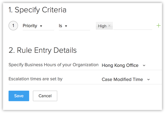 有时候,服务支持可能并不是由其分配对象进行。 服务支持升级功能让您可以配置规则,服务支持可依照此规则升级至操作层次结构中其它成员处。 您可以使用服务支持升级规则设置标准,具体取决于组织的分配规则。
