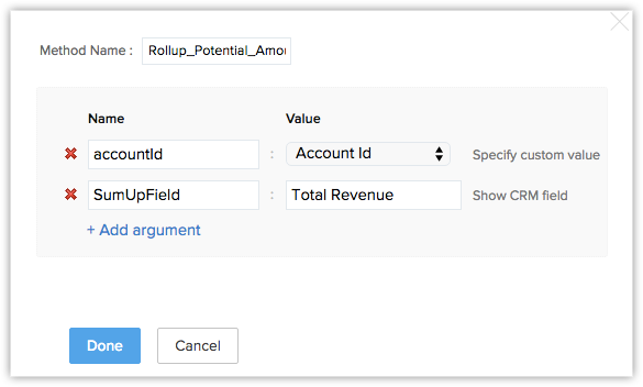 updateResp = zoho.crm.updateRecord(("Accounts"), accountID1, { input.SumUpField : total });