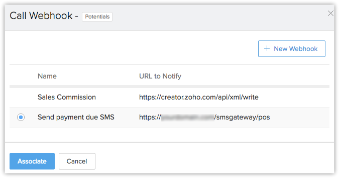 有客户付款今天到期。您可以关联webhook 到工作流规则定时操作,以便发送短信给您的销售代表,提醒付款到期日,客户名称,和金额等详细信息。 /p>