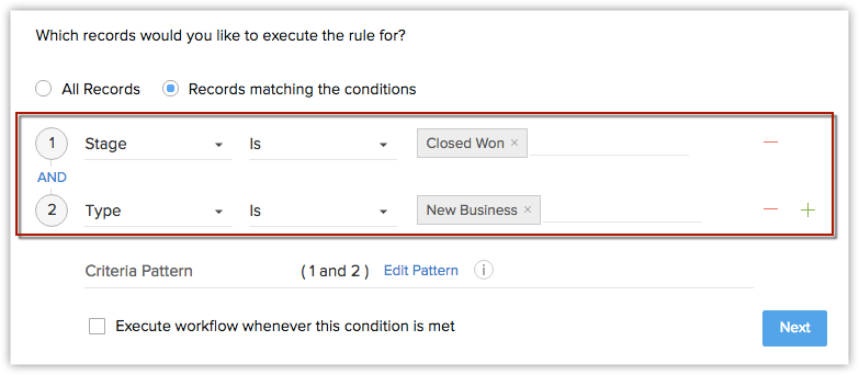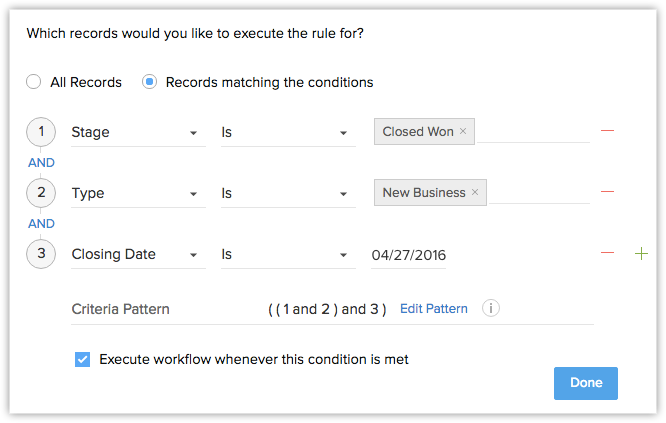 - 根据您的工作流规则条件在CRM中添加测试数据。