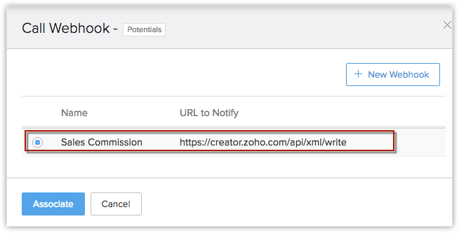 - 使用webhook您不能将数据从其它应用程序中推送到ZohoCRM。